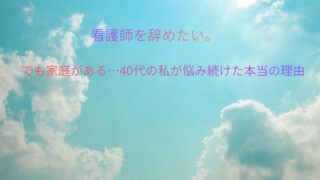 転職看護師を辞めたい。でも家庭がある…40代の私が悩み続けた本当の理由 「もう、そろそろ限界かもしれない」そんなふうに思いながら、今日も仕事に向かっていませんか。 看護師を辞めたい気持ちはある。 でも家庭がある。生活のこと、子どものこと、将来の不安。自分の気持ちだけで動いていいのか分からず、 結... 2025.12.31転職