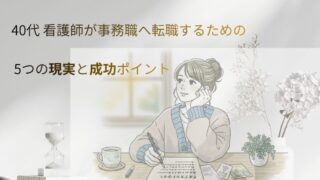 転職40代 看護師が事務職へ転職するための5つの現実と成功ポイント 40代で看護師として働いてきたものの、「体力的にきつい」「夜勤を続けられるか不安」「事務職へ転職したいけれど未経験で大丈夫?」と悩み、検索している方も多いのではないでしょうか。特に40代になると、仕事だけでなく家庭や将来のことも現実的に考... 2026.01.02転職