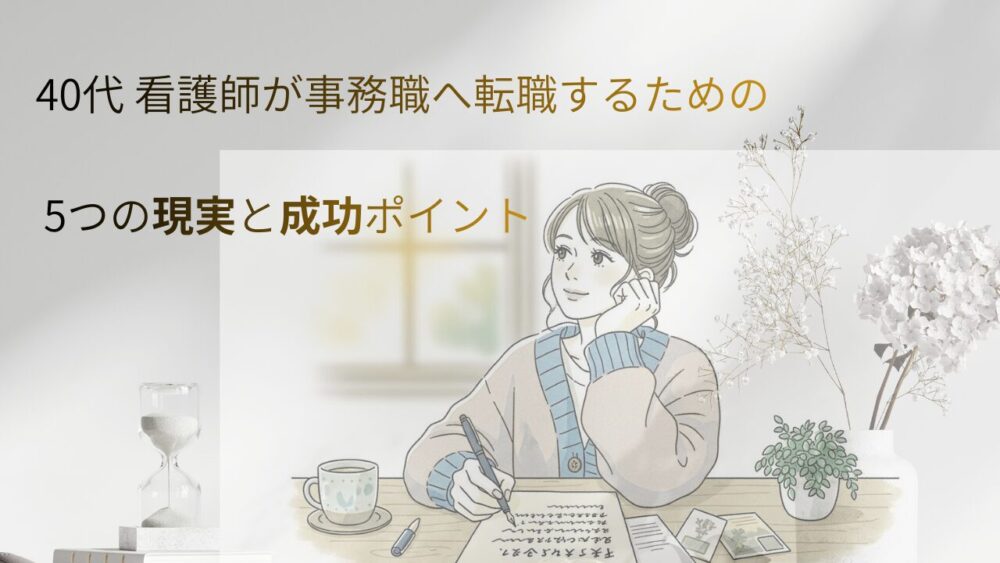 この記事では、40代看護師が事務職へ転職する際に直面しやすい現実と、成功するために押さえておきたい5つのポイントを、現実的な視点で分かりやすく解説します。